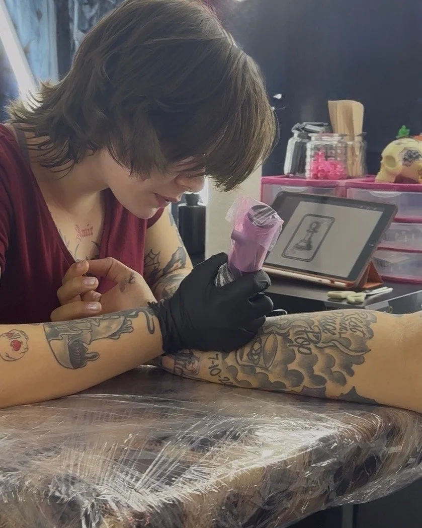 Pairing early passion with years of hands-on dedication. What started as childhood awe at the idea of wearing art forever has grown into a career built on creativity, connection, and precision. Since beginning her tattoo journey at 18, she has continuously refined her craft with patience and intention, embracing every part of the process.